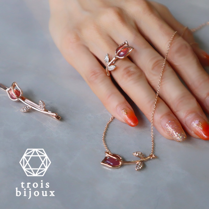フラワーリング 指輪 ジルコニア付きチューリップ /ゴールド/ピンクゴールド/#9フリー