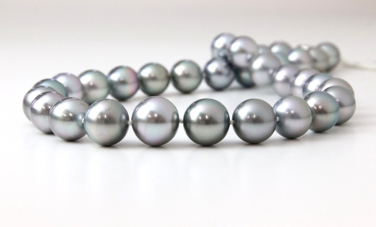黒蝶真珠”オーシャングレー”ネックレス【大きさ11.2-14.9㎜・長さ45㎝】<212-18>