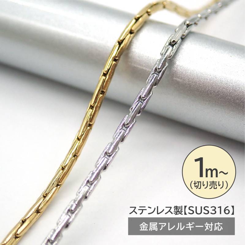 SUS316ステンレス チェーン 切り売り 1m 幅約2.8mm 小判 ウィート チェーン 金属アレルギー対応