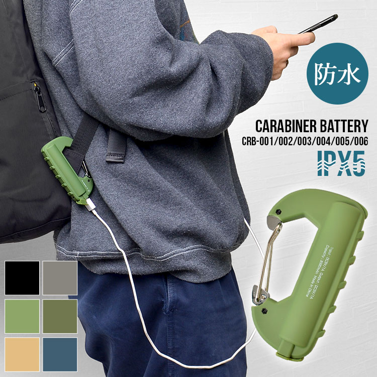 モバイルバッテリー 軽量 カラビナ 防水 スマートフォン スマホ iPhone 携帯 microUSBケーブル付属 充電 USBポ...