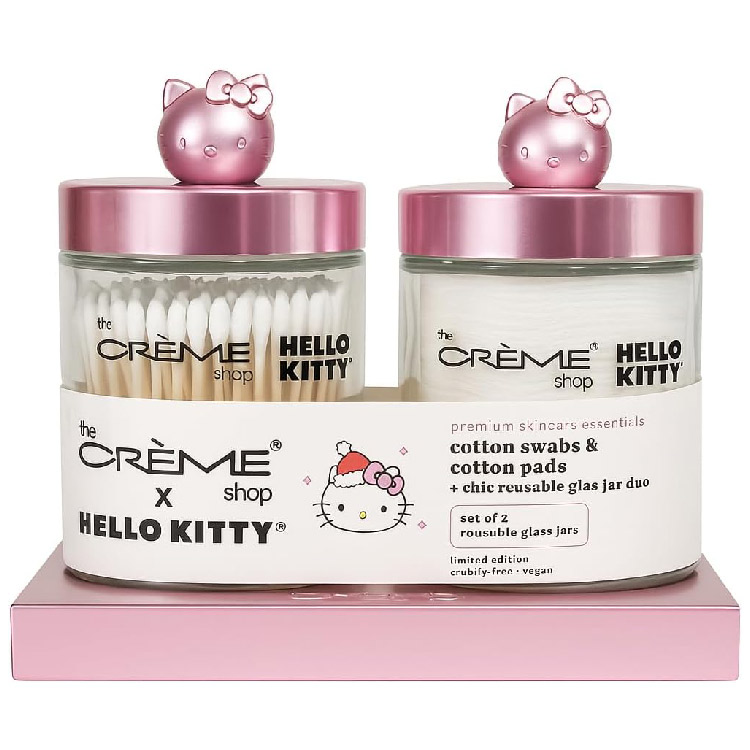 ハローキティ コットンケース 綿棒ケース メイク道具入れ 収納ケース 小物入れ 蓋付き THE CREME SHOP X HELL...