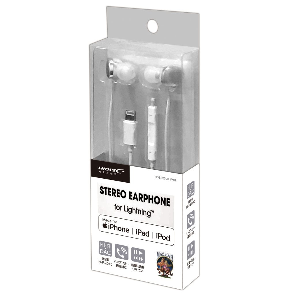 HIDISC STREOイヤホン for Lightning HDSE20LH1WH 有線iphone対応