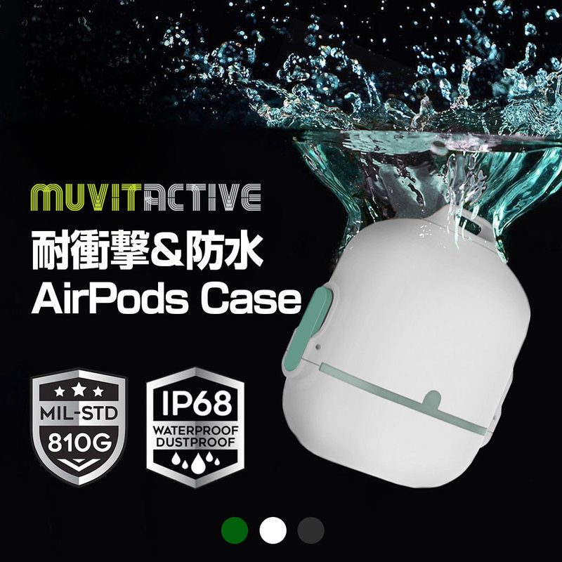 muvit AirPods ケース 耐衝撃&防水 AirPods Case MUVIT ACTIVE ブラック (エアーポッズケー...