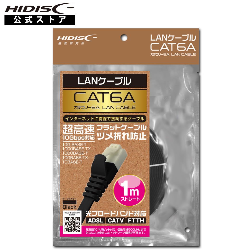 HIDISC LANケーブル 1m CAT6A 超高速10Gbps対応 フラットケーブル ツメ折れ防止 HDLANF010CAT6...
