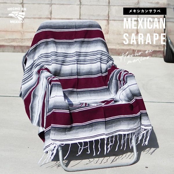 サラペ No.80 バーガンディー メキシカン ラグ 大判 厚手 メキシカンラグ MEXICO ブランケット エスニック ラグマッ...