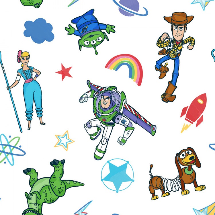送料無料/ 10cm単位 続けてカット ディズニー トイストーリー スケッチ 男の子 生地 総柄 コットン プリント キャラクター...