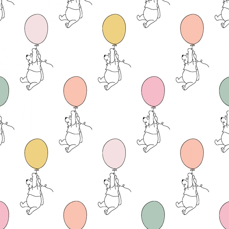 送料無料/ 10cm単位 続けてカット くまのプーさん バルーン 生地 総柄 コットン プリント キャラクター 布 手作り 手芸 ...