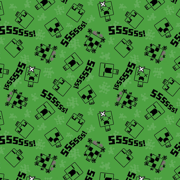 送料無料/ 10cm単位 続けてカット マインクラフト チビ クリーパー 生地 総柄 コットン プリント キャラクター 男の子 布...