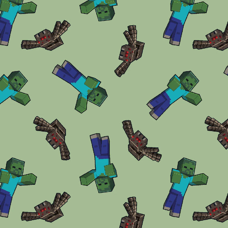 送料無料/ 10cm単位 続けてカット マインクラフト ゾンビ 生地 総柄 コットン プリント キャラクター 布 手作り