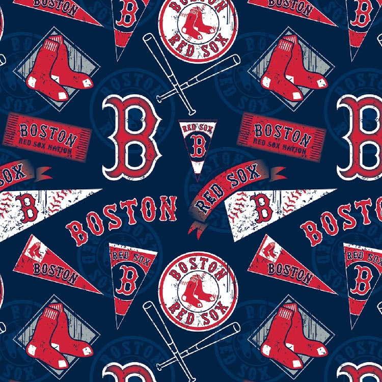 送料無料/ 10cm単位 続けてカット MLB ボストン レッドソックス ロゴ 生地 総柄 メジャーリーグ コットン プリント 男...