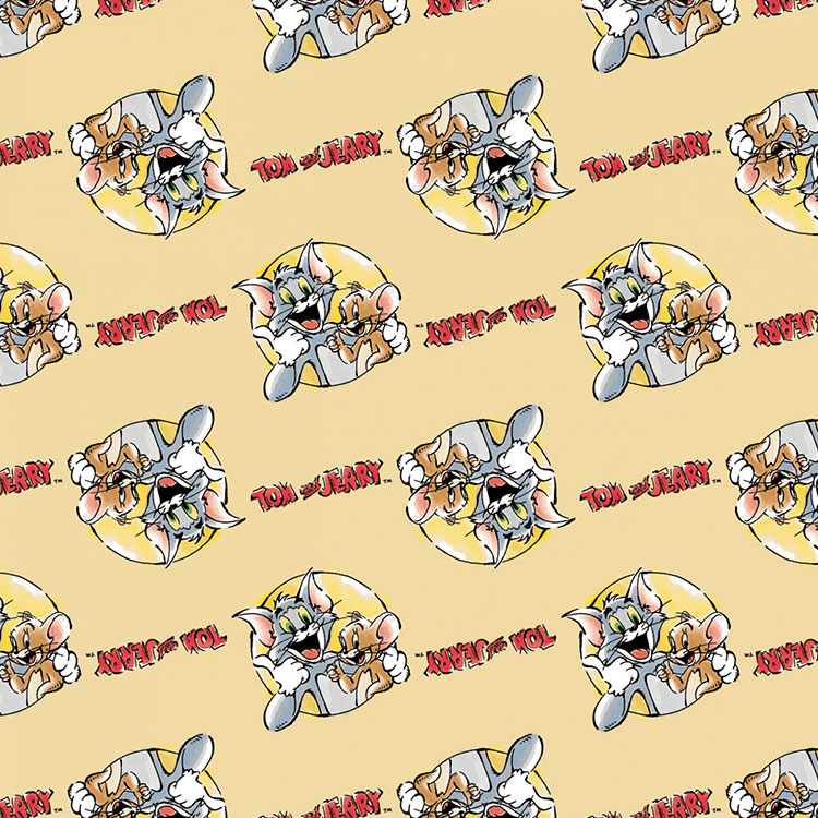 送料無料/ 10cm単位 続けてカット トムとジェリー トゥギャザー 生地 イエロー 総柄 コットン プリント キャラクター 布 ...
