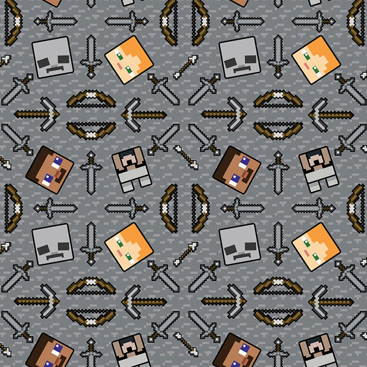 送料無料/ 10cm単位 続けてカット マインクラフト ピクセル グレー 生地 総柄 コットン プリント キャラクター 男の子 布...