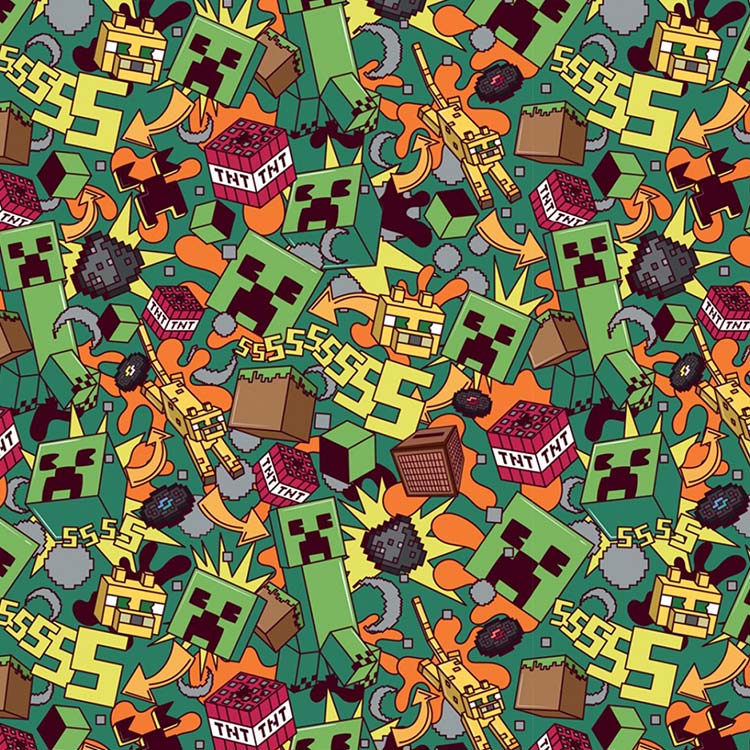 送料無料/ 10cm単位 続けてカット マインクラフト アクション ブラスト 生地 総柄 コットン プリント キャラクター 男の子...