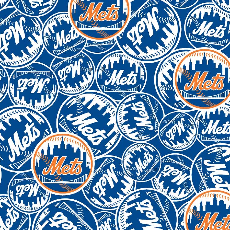送料無料/ 10cm単位 続けてカット MLB ニューヨーク メッツ ロゴ 生地 総柄 メジャーリーグ コットン プリント 男の子...