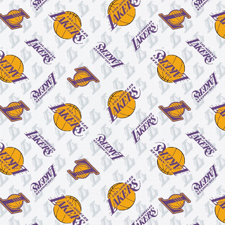 送料無料/ 10cm単位 続けてカット ロサンゼルス レイカーズ NBA バスケット レイカース 生地 総柄 コットン プリント ...