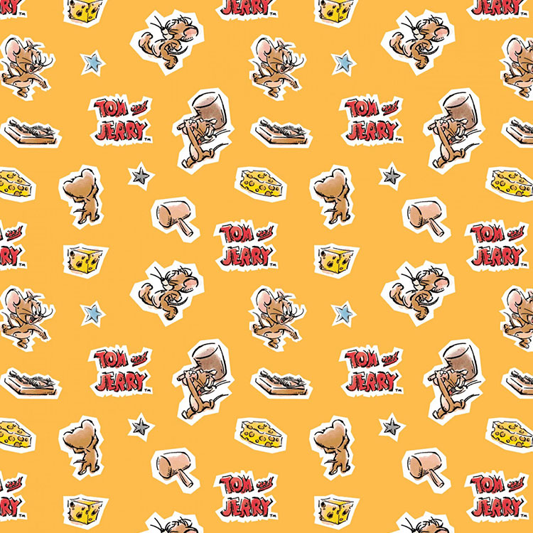 送料無料/ 10cm単位 続けてカット トムとジェリー ジェリー 生地 ダークイエロー 総柄 コットン プリント キャラクター 布...