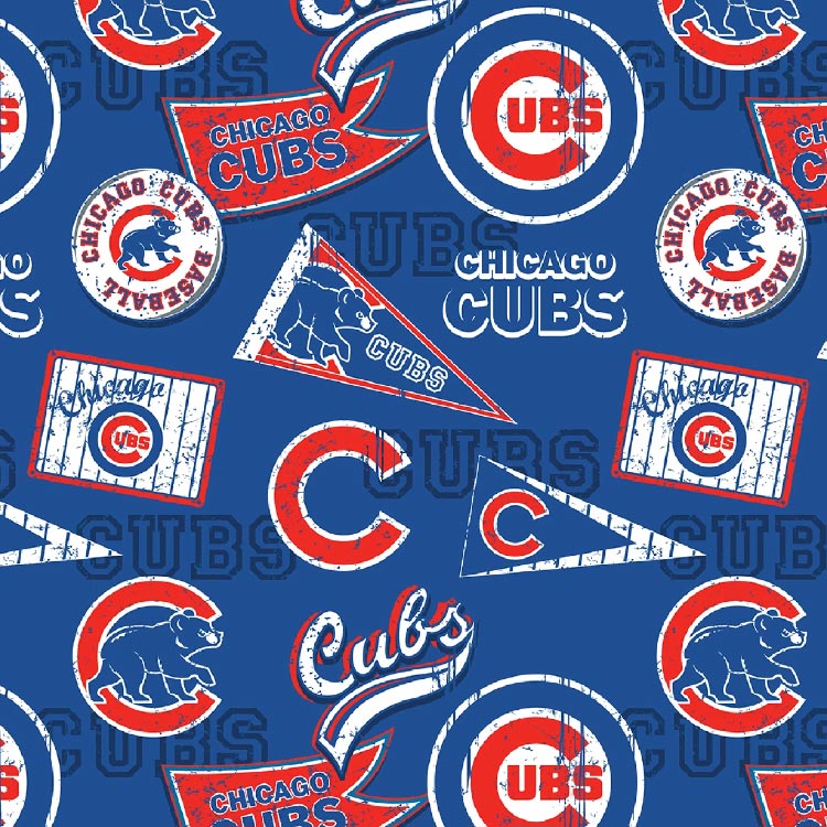 送料無料/ 10cm単位 続けてカット MLB シカゴ カブス ロゴ 生地 総柄 メジャーリーグ コットン プリント 男の子 女の...