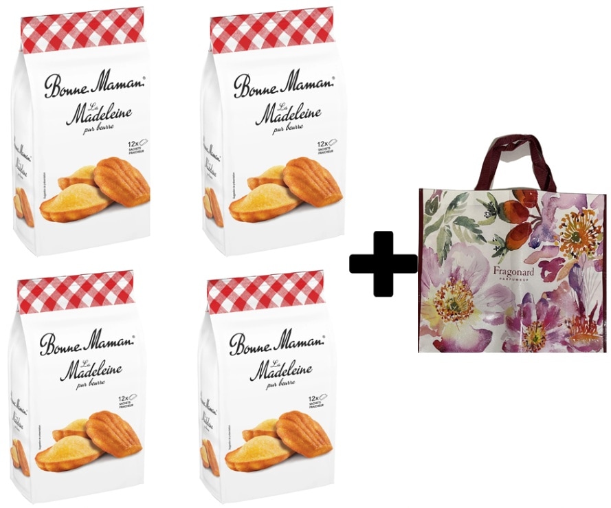ボンヌママン ピュアバター マドレーヌ 12個入り 300g サック入り 4個 + フラゴナールショッピングバッグ