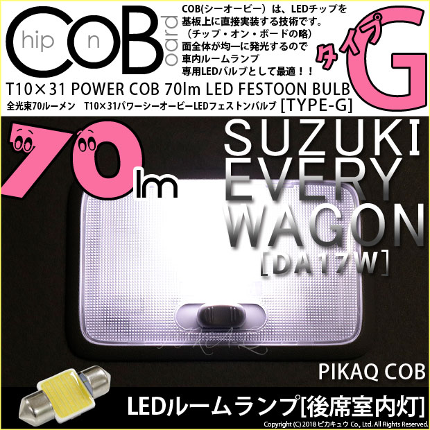 【即納】【メール便可】スズキ エブリィワゴン[DA17W]対応 後席室内灯用LED T10×31 POWER COB 70lm L...
