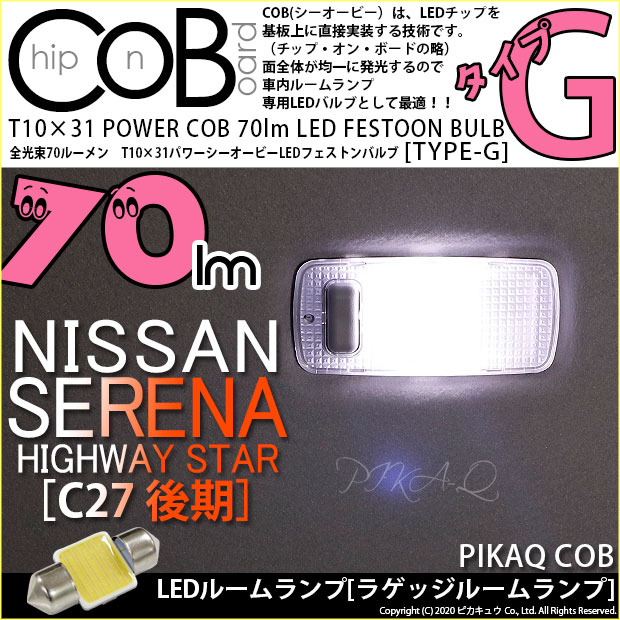 【即納】【メール便可】ニッサン セレナ ハイウェイスター[C27系 後期]対応 ラゲッジルームランプ用LED T10×31 POW...