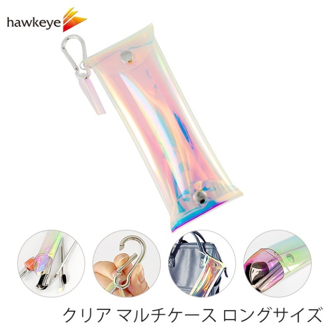 【ロング】クリア マルチケース オーロラ ロングサイズ カラビナ付き