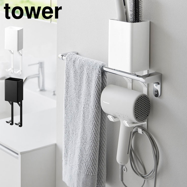 山崎実業 タオル掛け上ドライヤー&ヘアーアイロンホルダー タワー 公式 tower 10545 10546 ホワイト ブラック ド...