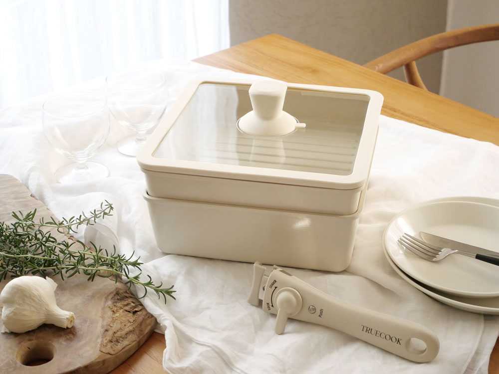 【TRUECOOK/トゥルークック】コンパクトに収納できる四角いフライパンセット ベージュ