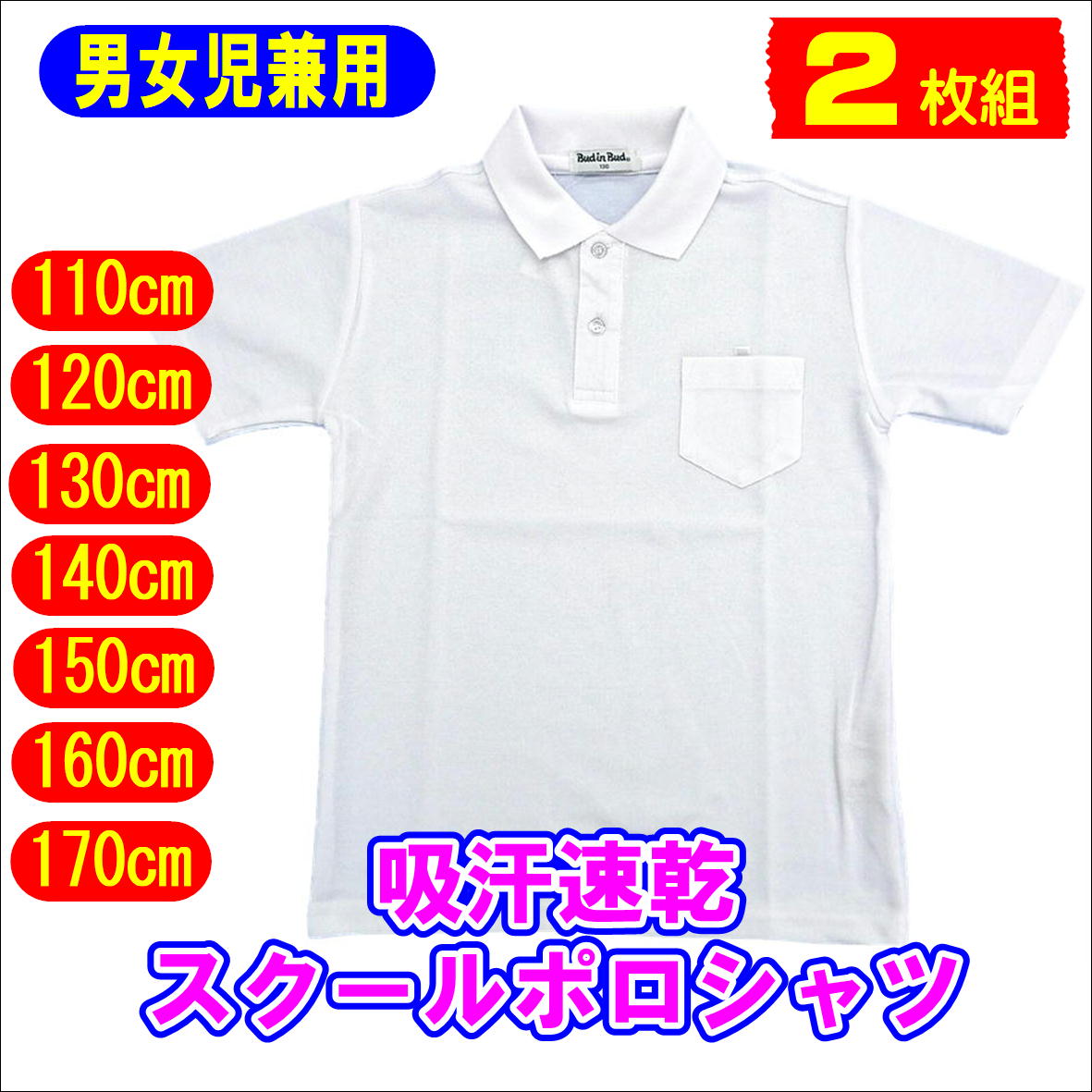 2枚セット スクール半袖ポロシャツ 子供 こども 白 無地 吸汗速乾スクールポロシャツ 小学生制服 110cm-170cm
