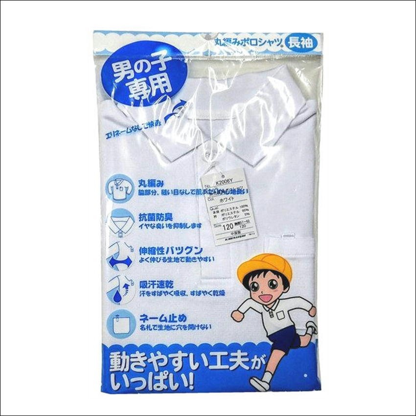 男の子専用 スクール 長袖 ポロシャツ 子供 男児 白 無地 スクールポロシャツ 小学生 通学 丈夫 K2006Y