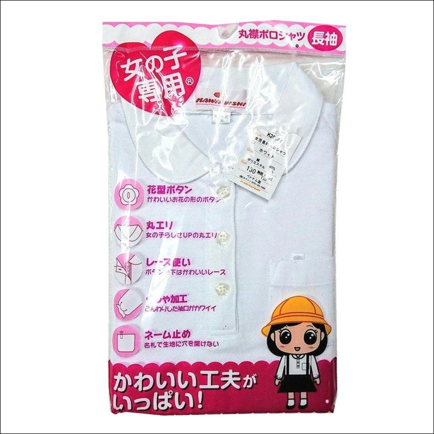 女の子専用 スクール 長袖 ポロシャツ 子供 女児 白 無地 女の子 小学生 通学 スクールポロシャツ K2008Y