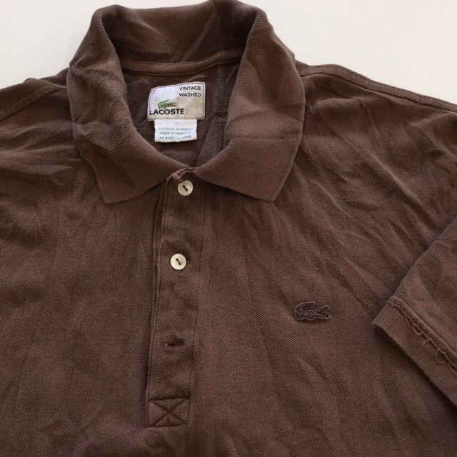 LACOSTE ラコステ 鹿の子 半袖ポロシャツ 送料無料 メンズ 7/L/焦茶 VINTAGE WASHED ワンポイント ブラ...