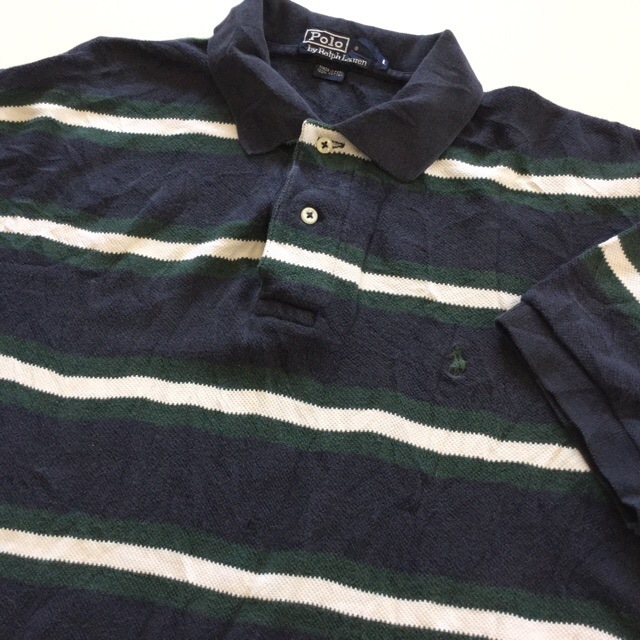 Polo by Ralph Lauren ラルフローレン ボーダー ワンポイントロゴ 半袖ポロシャツ サイズL 紺色 US古着