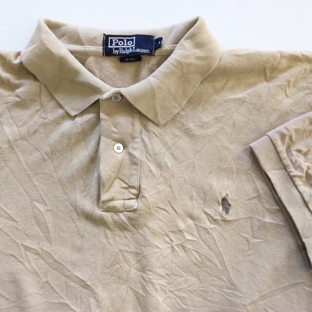 Polo by Ralph Lauren ポロ ラルフローレン 鹿の子 半袖ポロシャツ アメリカ直輸入 メンズ L/ベージュ 無地...