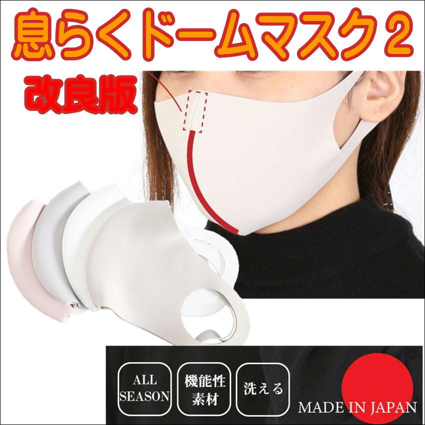 【日本製】息らくドームマスク2 改良版 マスク ドームマスク UVカット オールシーズン 息がしやすい 男女兼用 洗えるマスク 8...