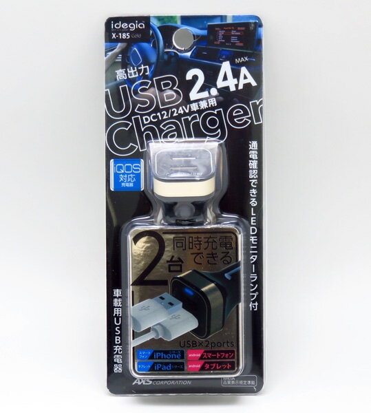 スマホ充電器 スマートフォン充電器 車 USBポート×2 DC12V車/24V車 車載用USB充電器 2.4A iQOS対応 ピン...