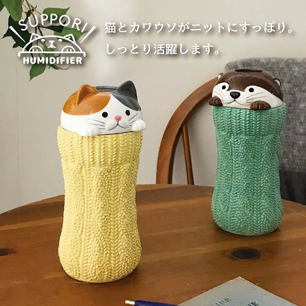 加湿器 USB潤いポット USB潤いポット すっぽりニット 三毛猫 カワウソ 加湿器 かわいい 癒し 猫 雑貨 潤いマスコット ...