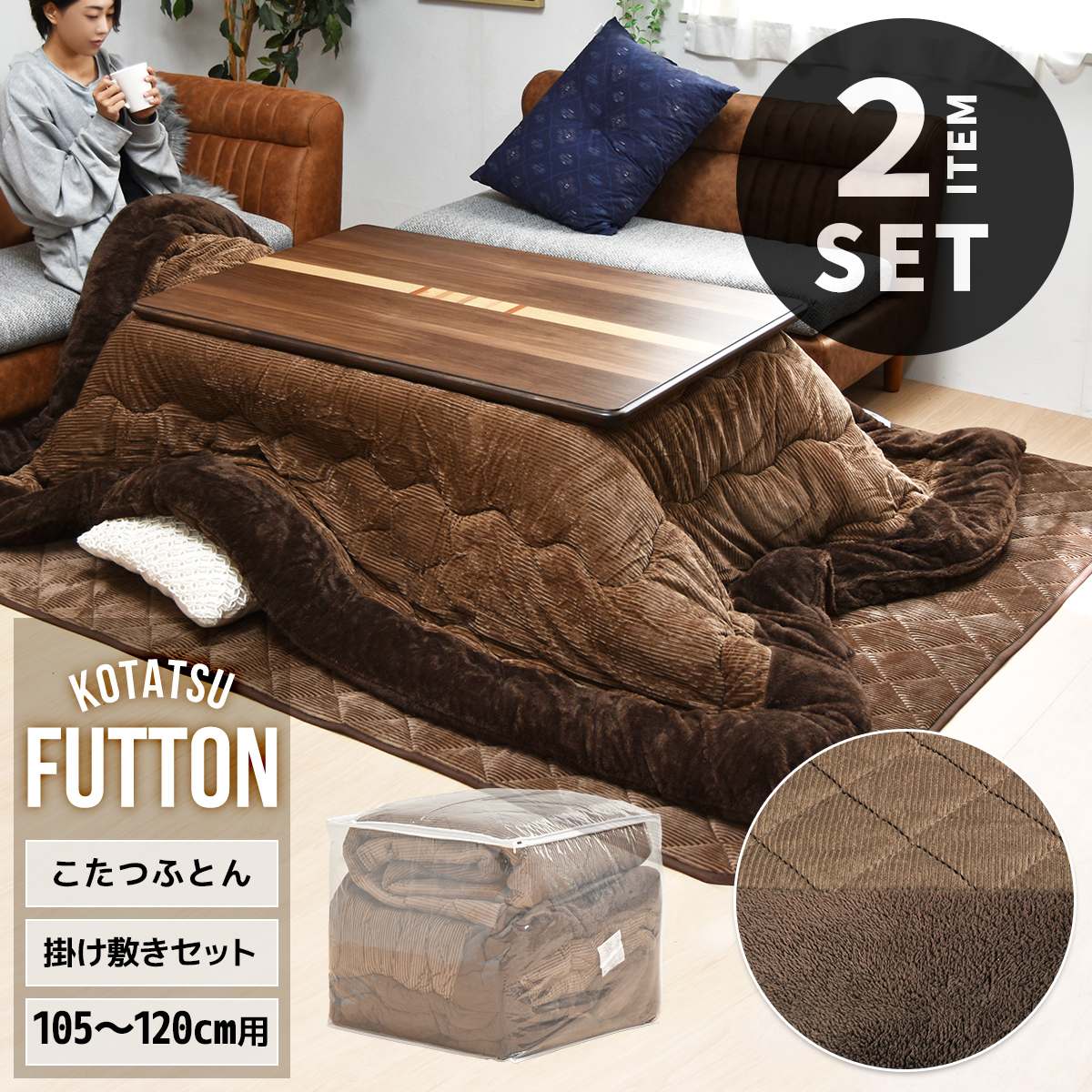 コタツ掛敷布団セット (幅105~120cm用) コーデュロイブラウン UKKN0164 コタツ ロータイプコタツ用ふとん&ラグ...