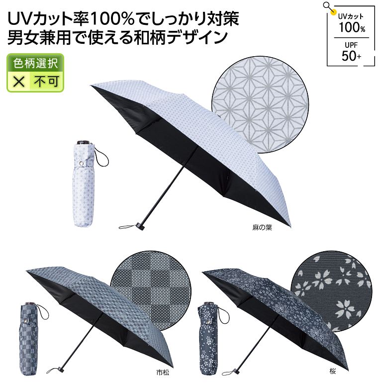 モノクロ和柄 晴雨兼用折りたたみ傘