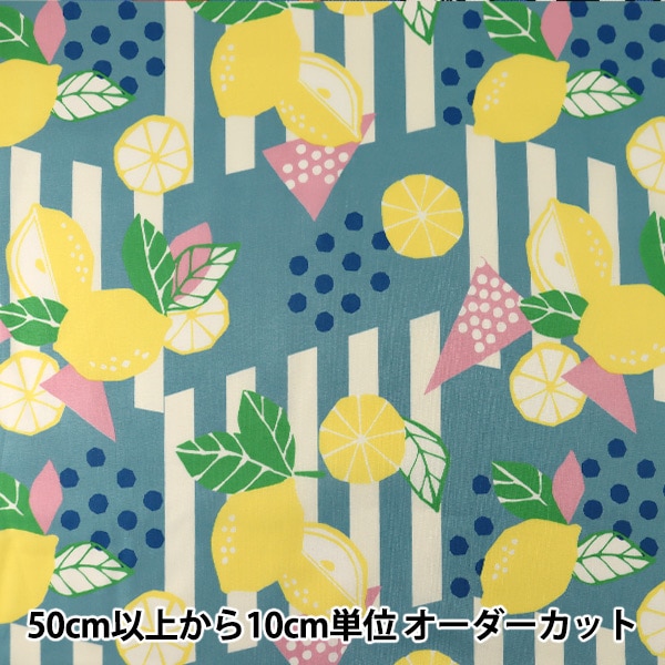 【数量5から】 生地 『シーチング おしゃれ甚平ゆかた レモン柄 サックス LOA-61060-2B』 KOKKA コッカ