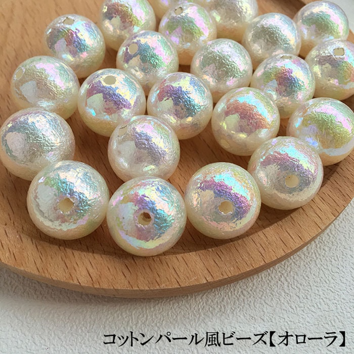 【両穴】コットンパール風ビーズ【オーロラ】10mm/12mm/14mm【10個】穴1.8mm ラウンド 樹脂パール エアーパール ...