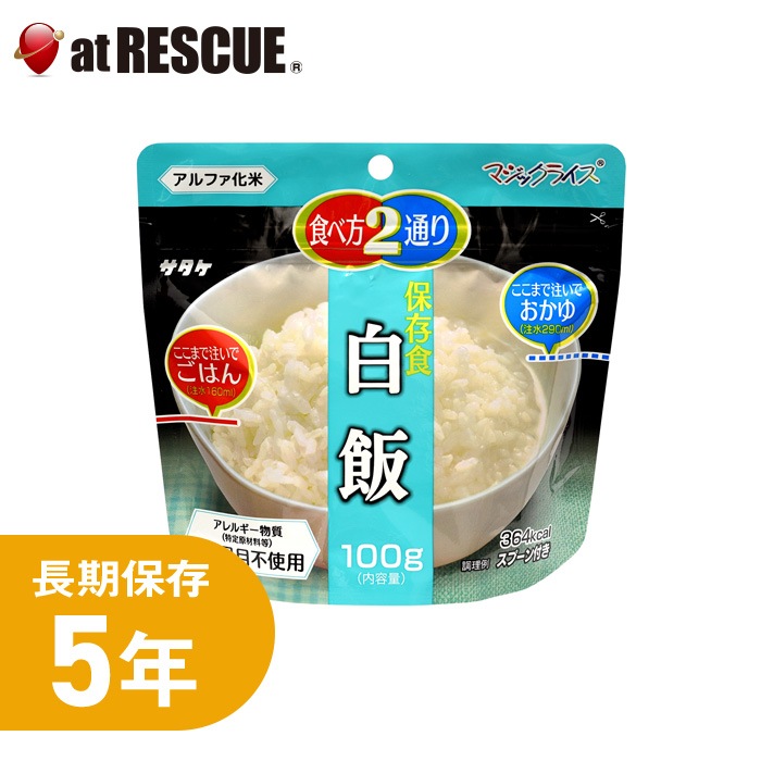 【100食セット/ケース】 7年保存 レスキューライス【白米】 アルファ米 100食セット