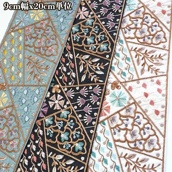 9cm幅 幅広インド刺繍リボン 幅広パッチワーク風ブレード 特大幅小花柄刺繍リボン 帯紐和装着物装飾資材 ハンドメイドがま口財布 ...