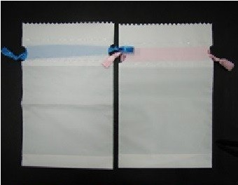 梨地ポーチ 白 500枚 送料込み サテンリボン(ブルー・ピンク)