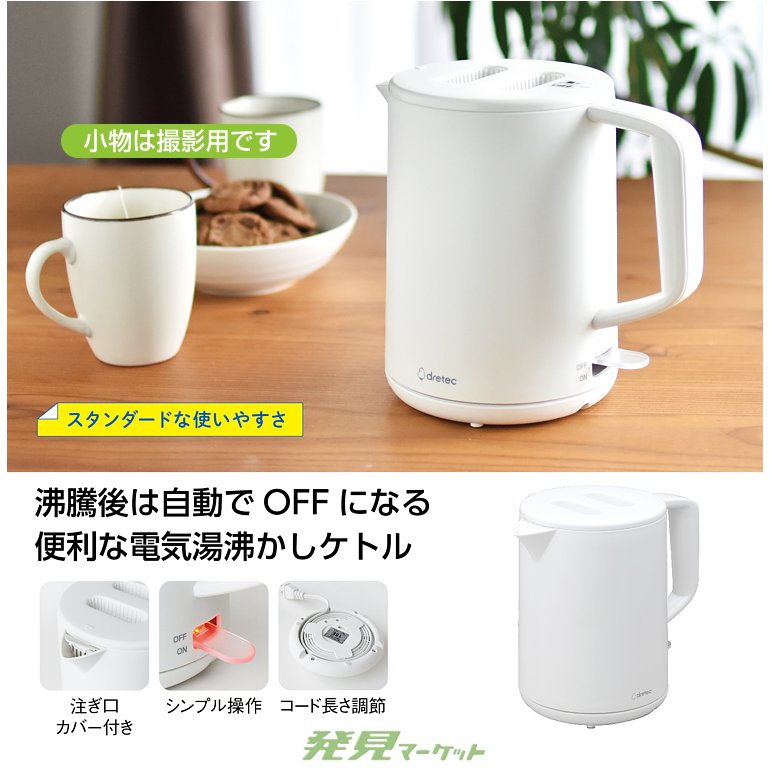 【動作確認済】【中古】本体のみ ドリテック 電気ケトル ティッピー ホワイト PO-129WT