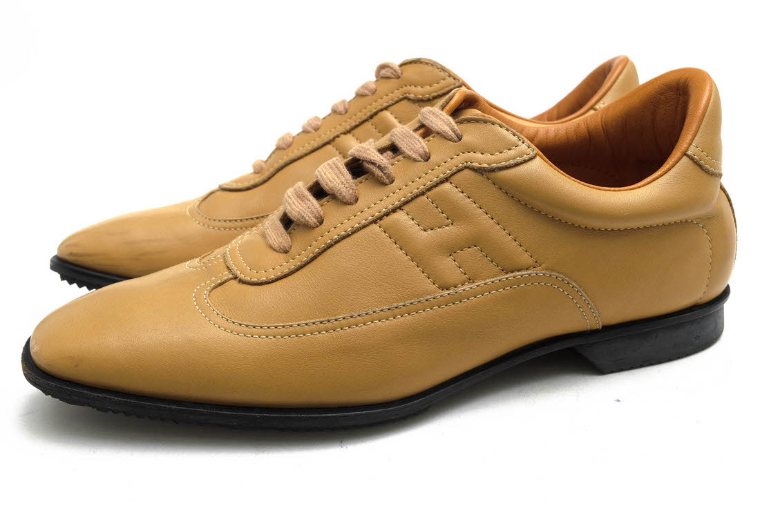 HERMES Quick クイック / エルメス Hロゴ 牛革 カーフ 定番 ベージュ ローカットスニーカー レディース