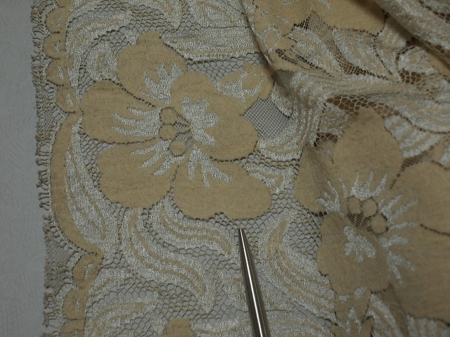 閉店処分大セール お買得 【名門 SOLSTISS/ウールリバーレース】フランス製,輸入生地, ベージュ 90cm巾3.9m ...
