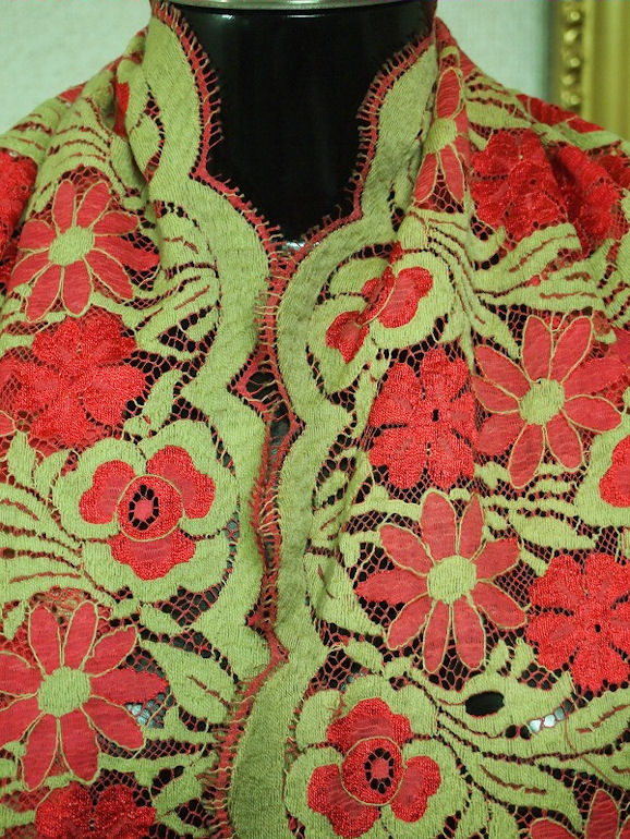 閉店処分大セール お買得 【名門 SOLSTISS/コットンリバーレース】 フランス製,輸入生地, コットン/レーヨン 黄緑/薄い...
