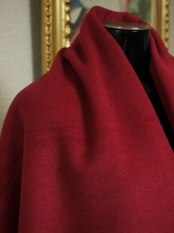閉店大セールお買得 【パイル織り シルクウール コート生地】 英国製,輸入生地 シルク18% ウール82% チェリー系 140巾c...