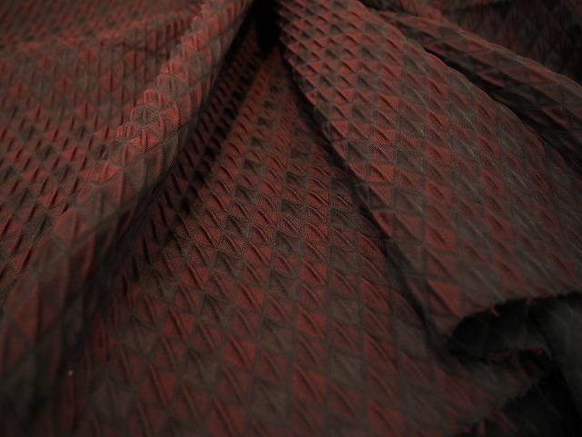 閉店大セール お買得 【シルク膨れ織りバイアス格子コート生地】 フランス製,輸入生地 シルク20%アセテート80% エンジ濃淡 1...