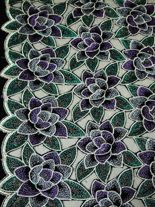 閉店大セール お買得 【チュール/ベルベット ハンドカット/レース 大輪花柄】 日本製生地 黒/白/紫/グリーン/ラメ系 90cm...